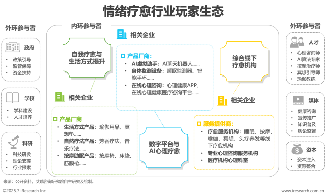 情绪疗愈行业生态参与者 情绪疗愈行业内外双环共振,多元力量携手共绘生态繁荣图景
