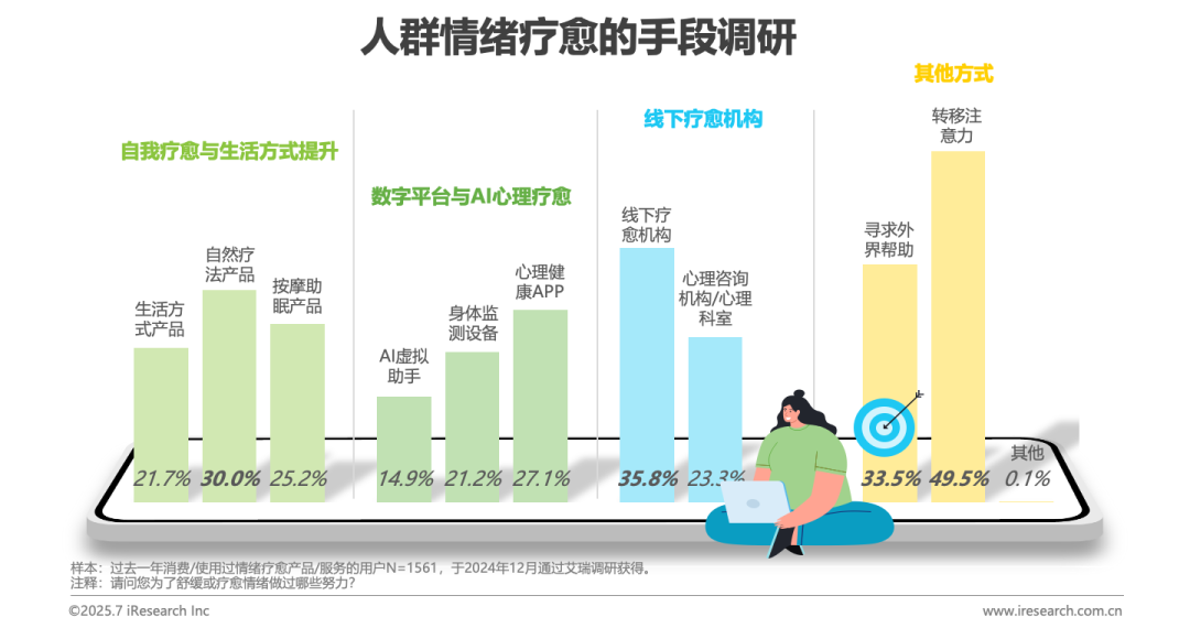 疗愈手段 人群积极进行情绪疗愈,以即时疏解+长效干预模式达到身心平衡