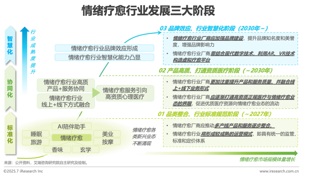 未来发展趋势:行业侧 情绪疗愈行业经过标准—协同—智慧三阶段演进,驱动企业全周期发展