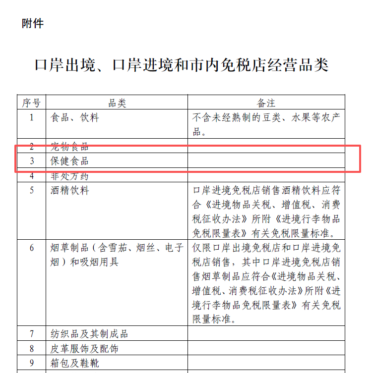 《通知》提出,进一步扩大免税店经营品类,将更多便于携带的消费品纳入经营范围,新增手机、微型无人机、运动用品、保健食品、非处方药、宠物食品等热销商品,丰富旅客购物选择。