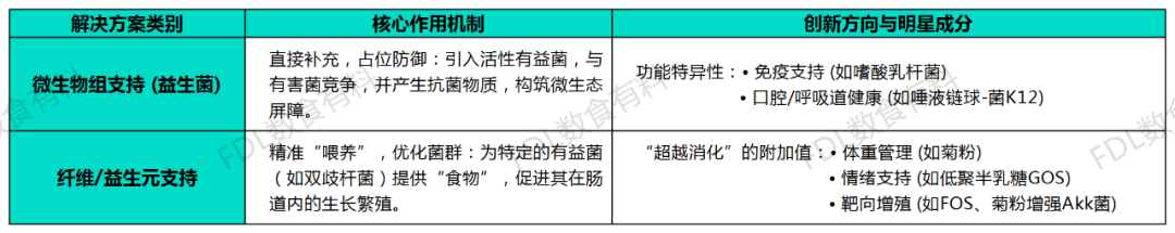 FDL数食有料认为,后生元的出现,标志着微生态补充剂的竞争正从“保证活菌数量”的生物学挑战,转向“实现精准功效与最佳体验”的产品工程学竞赛。它解决了行业最大的痛点,将创新的焦点从“如何让菌活下来”解放到“如何让产品更好用、更有效”。 因此,对于品牌而言,后生元带来的不仅是一个新原料,更是一个全新的战略机遇。 1、突破场景限制:利用后生元可以被定位在免疫支持和代谢健康等肠道健康以外的细分赛道,从而切入更广阔的市场。 2、剂型创新蓝海:充分利用其稳定性优势,率先布局那些活菌难以进入的领域,例如开发功能性即饮饮料、烘焙零食、软糖甚至热饮冲剂,通过创新的产品形态建立先发优势。 3、抢占心智认知:目前消费者对“后生元”的认知尚处早期。品牌应通过清晰、科学的沟通,向市场普及后生元的概念及其相对于益生菌的独特优势,率先成为该品类的教育者和领导者。