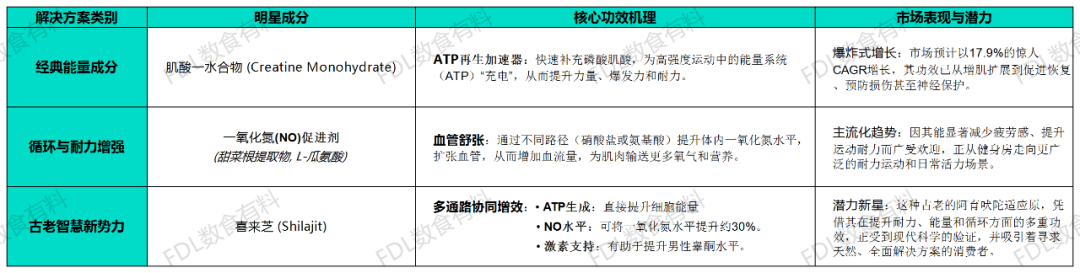 09 运动表现与恢复 从硬核玩家到日常健身人群的全覆盖 随着全民健身意识的觉醒和对久坐生活方式风险的认知加深,运动营养已不再是专业运动员的专属领域,而是渗透到每一个追求健康生活方式的普通人之中。 这股浪潮正推动整个运动营养市场高速发展,其规模在2024年已达485.8亿美元,并预计在2030年增长至750亿美元。其中,专注于提升运动表现与加速运动后恢复的补充剂,是增长最快的核心板块。 当运动营养市场的边界正在不断拓宽,FDL数食有料认为,这一赛道的未来趋势是科学实证的经典成分与新奇天然的潜力成分并行发展,共同满足从硬核健身者到日常运动爱好者的多元化需求。 因此品牌需要构建一个“金字塔式”的产品矩阵来应对这一变化。