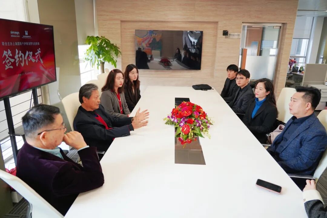 本次合作签约仪式在上海博华办公室举行,上海博华国际展览有限公司总经理章学强先生与上海迎河展览服务有限公司总经理何令先生共同出席了签约仪式。