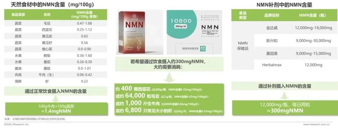 日常饮食难以满足NMN的有效摄入需求,经安全性评估的NMN保健品在摄入效率上更具优势