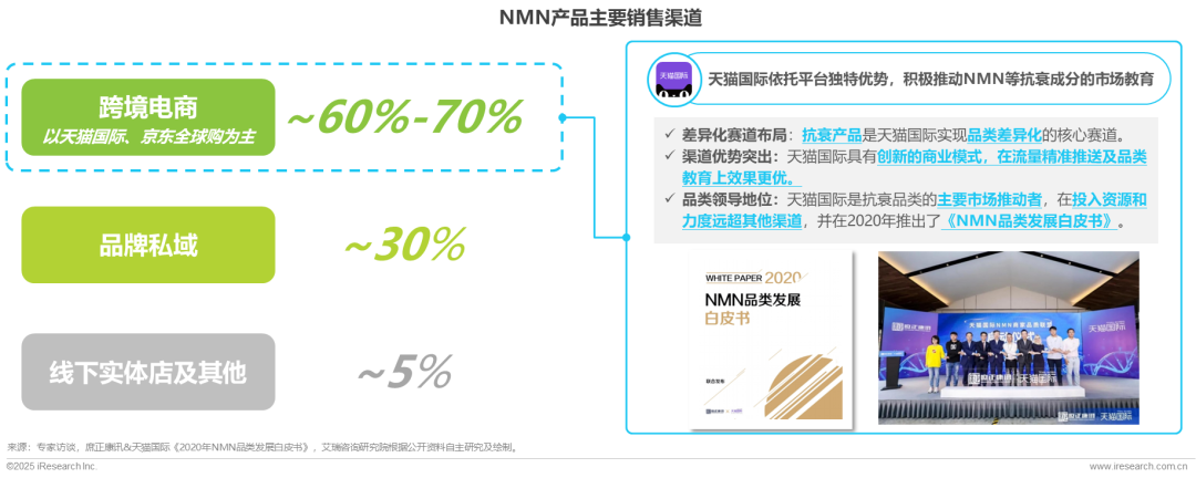 NMN产品目前主要依托跨境电商及私域渠道进行销售
