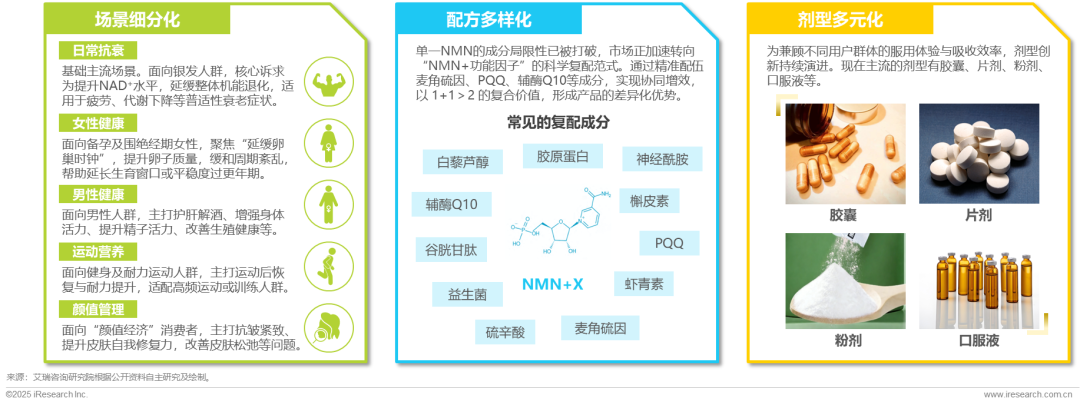 NMN保健品市场正呈现场景细分化、配方多样化与剂型多元化的多维升级趋势