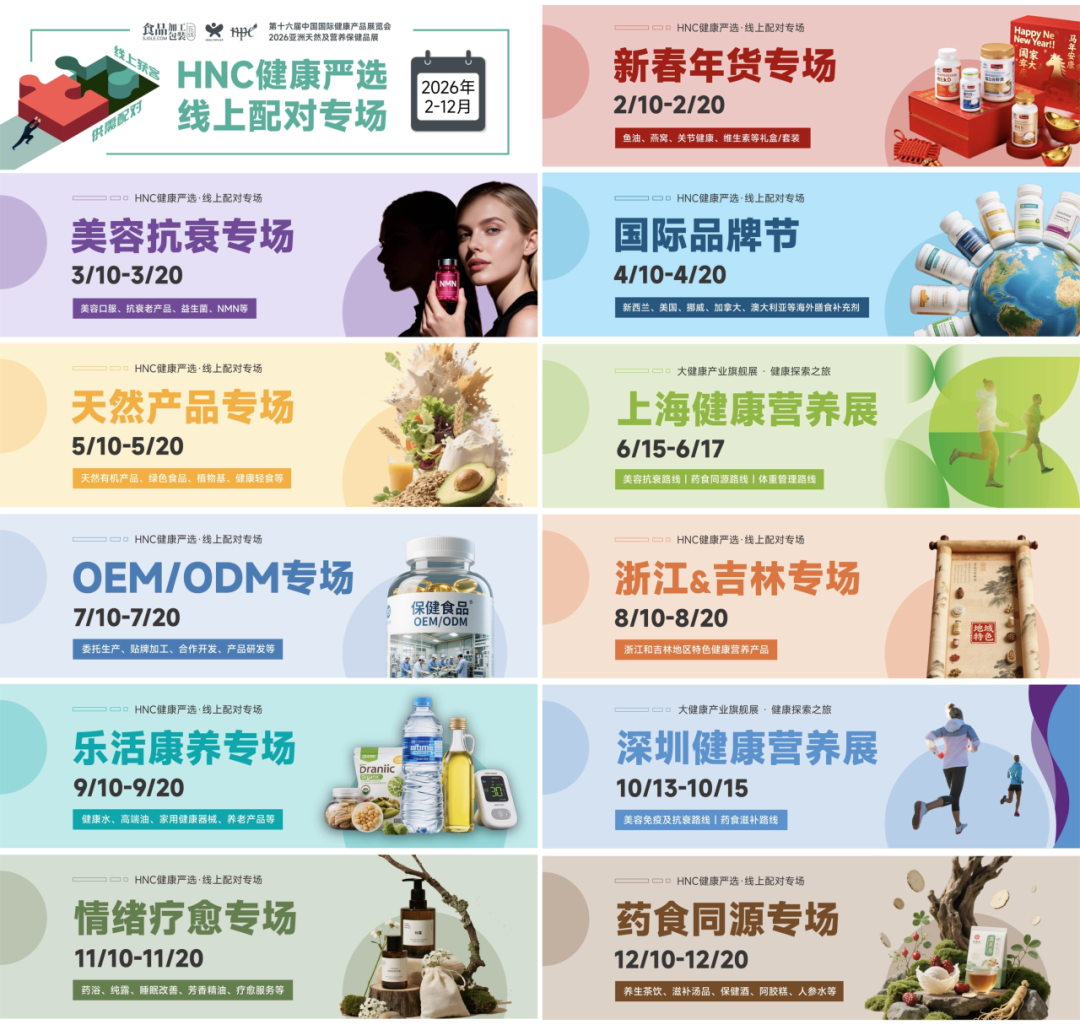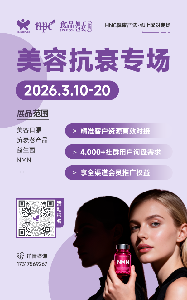 基于当下行业热门趋势,针对细分人群,3月10-20日HNC健康严选 · 线上配对专场活动以“美容抗衰”为主题,为专业买家提供美容口服、抗衰老、益生菌、NMN、胶原蛋白肽等产品